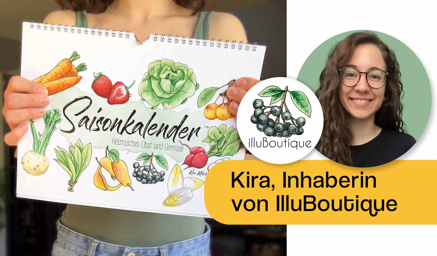 Kira ist Illustratorin und Gründerin von illuBoutique. In ihren Arbeiten verbindet sie kreative Gestaltung mit Themen wie gesunde Ernährung, Nachhaltigkeit und dem eigenen Gemüsegarten.